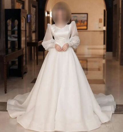طراحی این لباس بهگونهایست که در عین سادگی، بسیار چشمگیر است. پارچهی لطیف، دوخت تمیز و فرم کلاسیک آن باعث میشود در روز عروسیتان مثل یک ستاره بدرخشید ✨